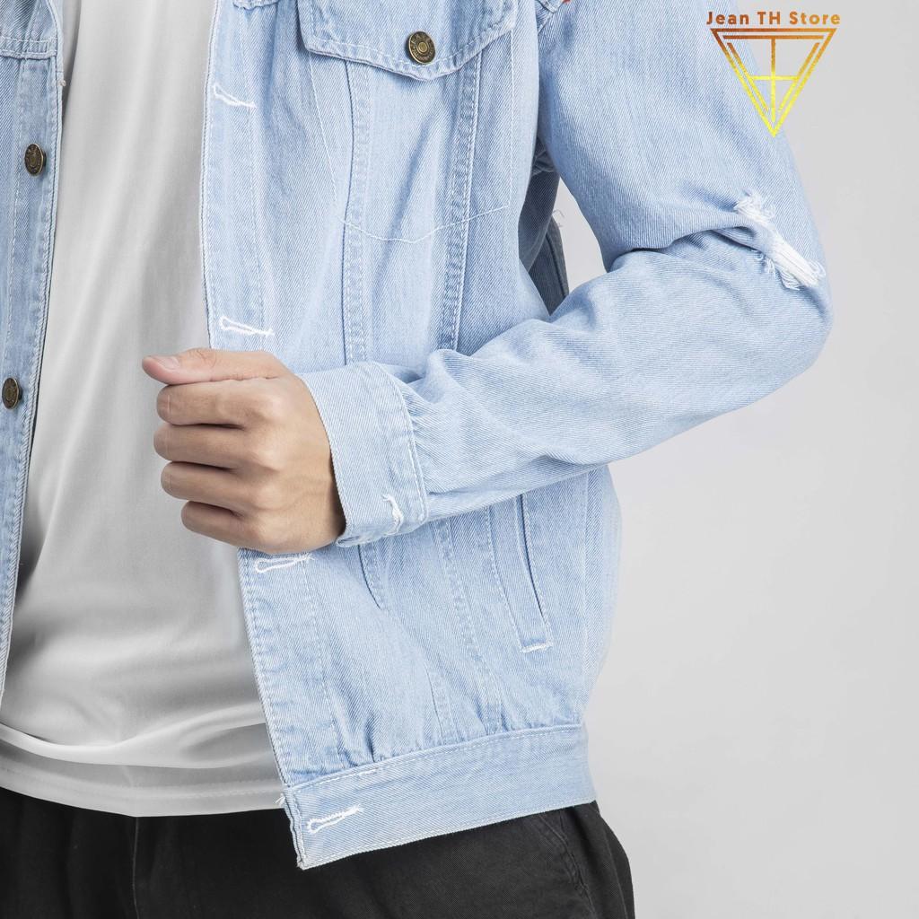 Thông tin chi tiết của sản phẩm áo khoác jean nam màu xanh cơ bản cào xước - Xuất xứ: Việt Nam - Chất liệu : Jean dệt cực chuẩn, không nhăn, có độ bền