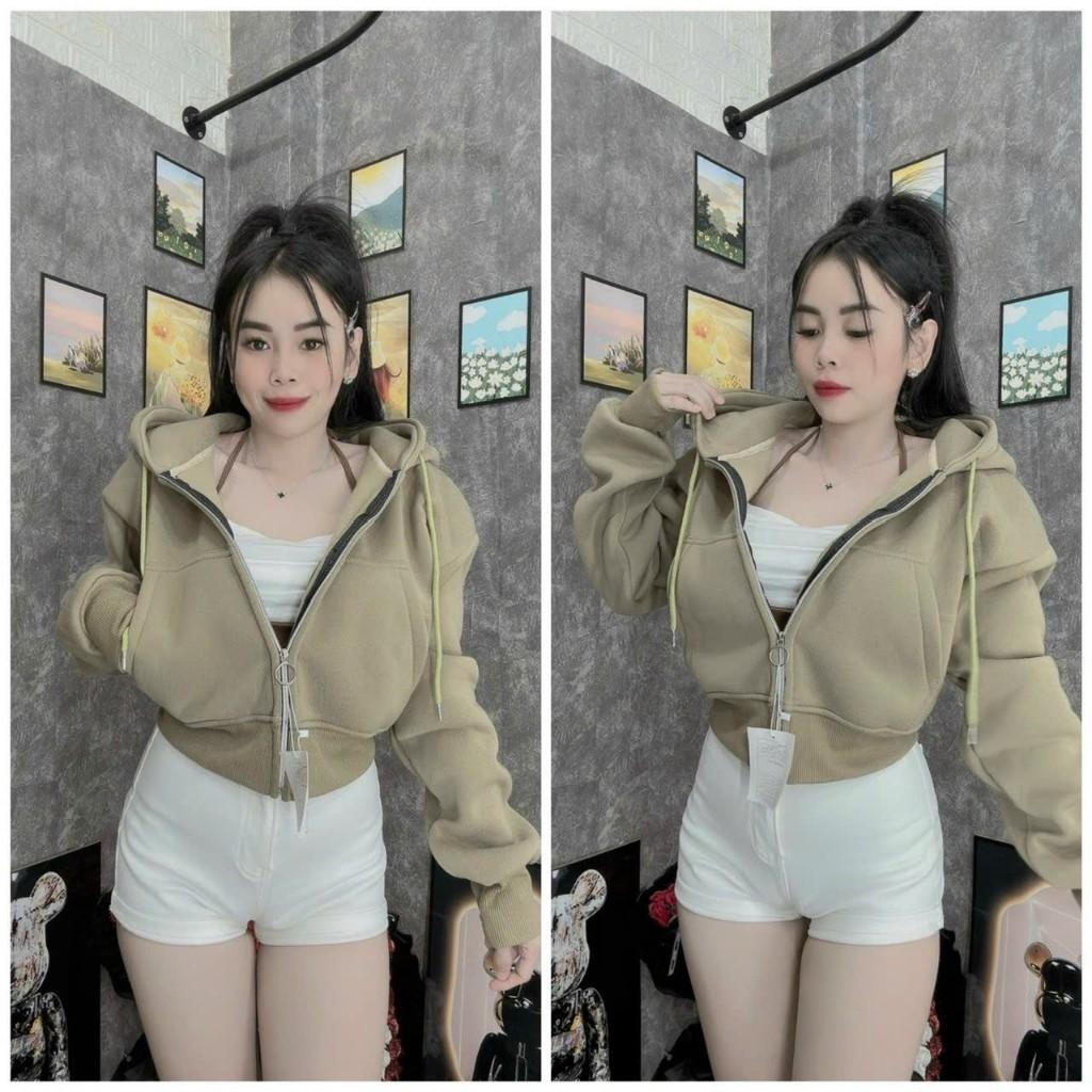 ✨Áo khoác nỉ croptop tay dài trơn có mũ chùm đẹp hàng rất đẹp-A2029