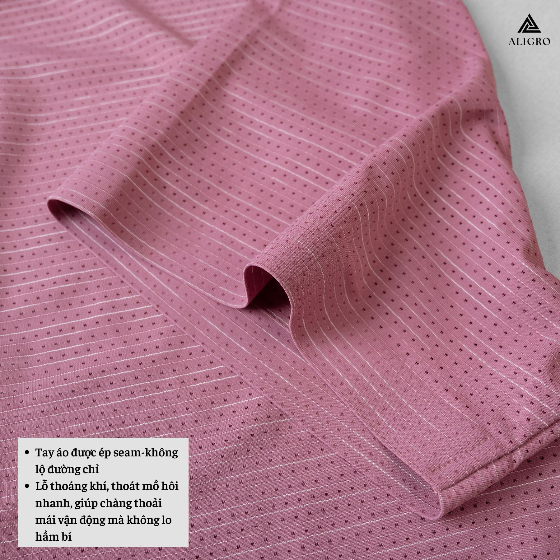 ✨Áo polo golf nam ngắn tay ALIGRO chất vải coolmax kẻ ngang màu vỏ đỗ năng động ALGPLO115