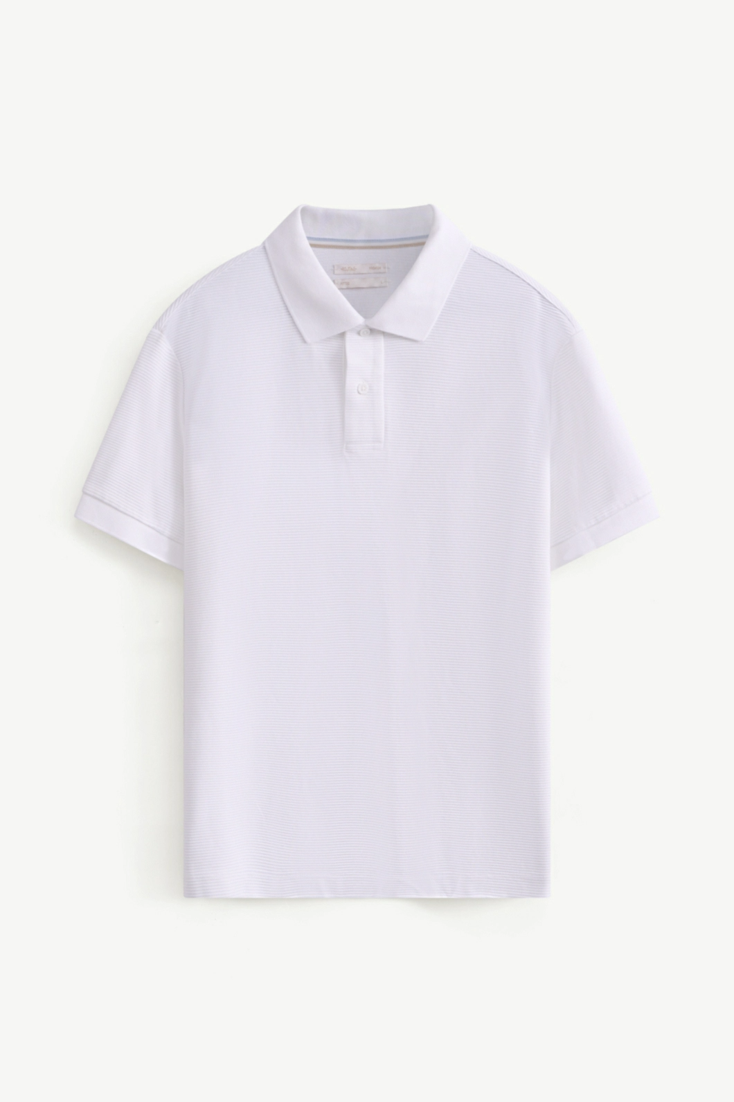 Áo thun Polo sọc ngang gân nổi trên nền vải melange, cổ bo jacguard mắt nhỏ - Kiểu dệt sọc mới tạo hiệu ứng gân nổi đặc sắc - 6 gam màu trung tính -