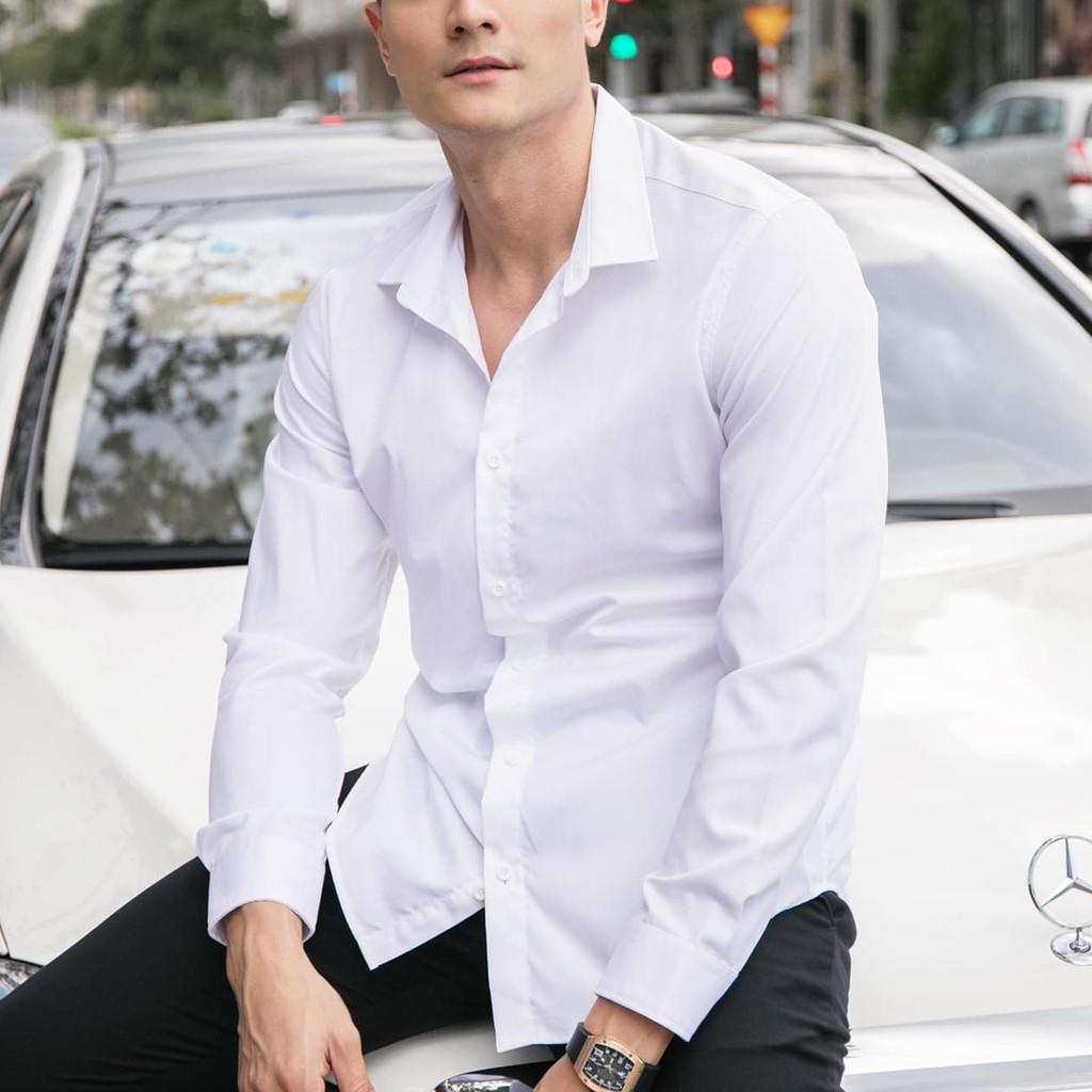 Siêu phẩm áo sơ mi trắng nam tay dài Không túi HOT TREND – Món đồ không thể thiếu trong tủ đồ phái mạnh! Trẻ trung, thanh lịch, dễ phối đồ, phù hợp cho đi
