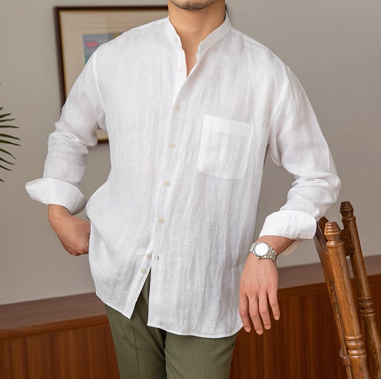 ✨Áo sơ mi Linen dài tay nam cao cấp thiết kế cổ trụ phối cúc 1 túi ngực vải thoáng mát không bai gião MS05