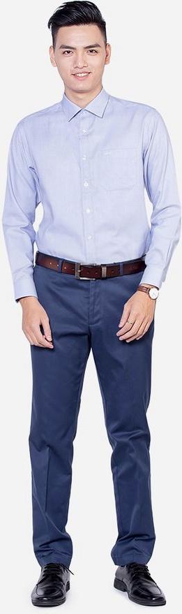 Áo sơ mi nam họa tiết chìm màu xanh dương dài tay mã 8561