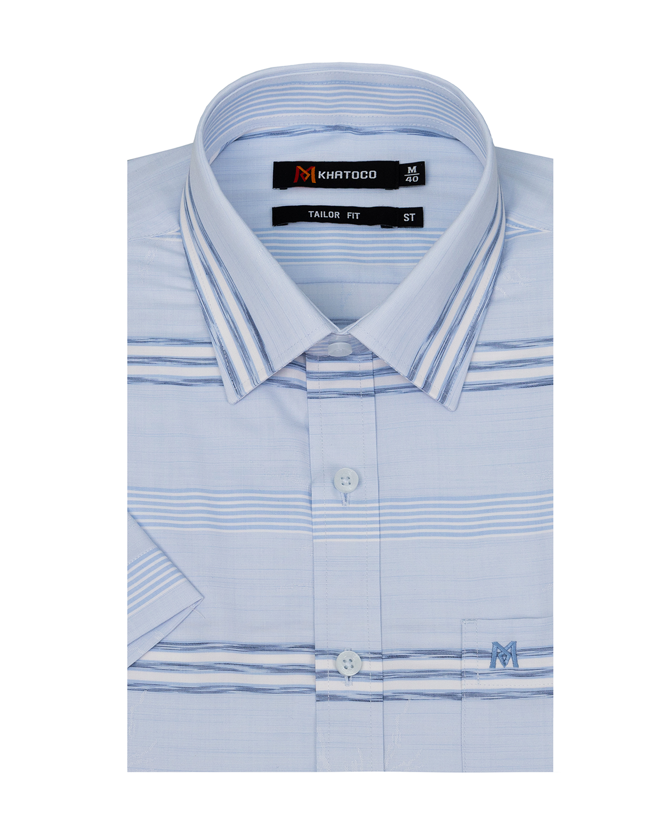 Áo sơ mi nam tay ngắn lai ngang – Khatoco - Mã hàng: A1MN538T2 - Chất liệu: 75% Polyester + 22% Viscose (Bamboo) + 3% Spandex → Vải mềm mại, thoáng mát, co giãn nhẹ,