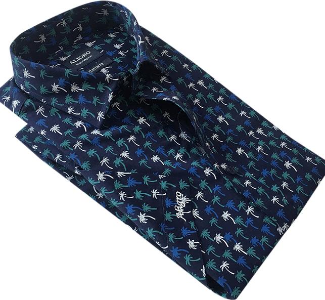 Áo SƠ MI NAM CỘC TAY HỌA TIẾT XANH ALIGRO ALGS-C88