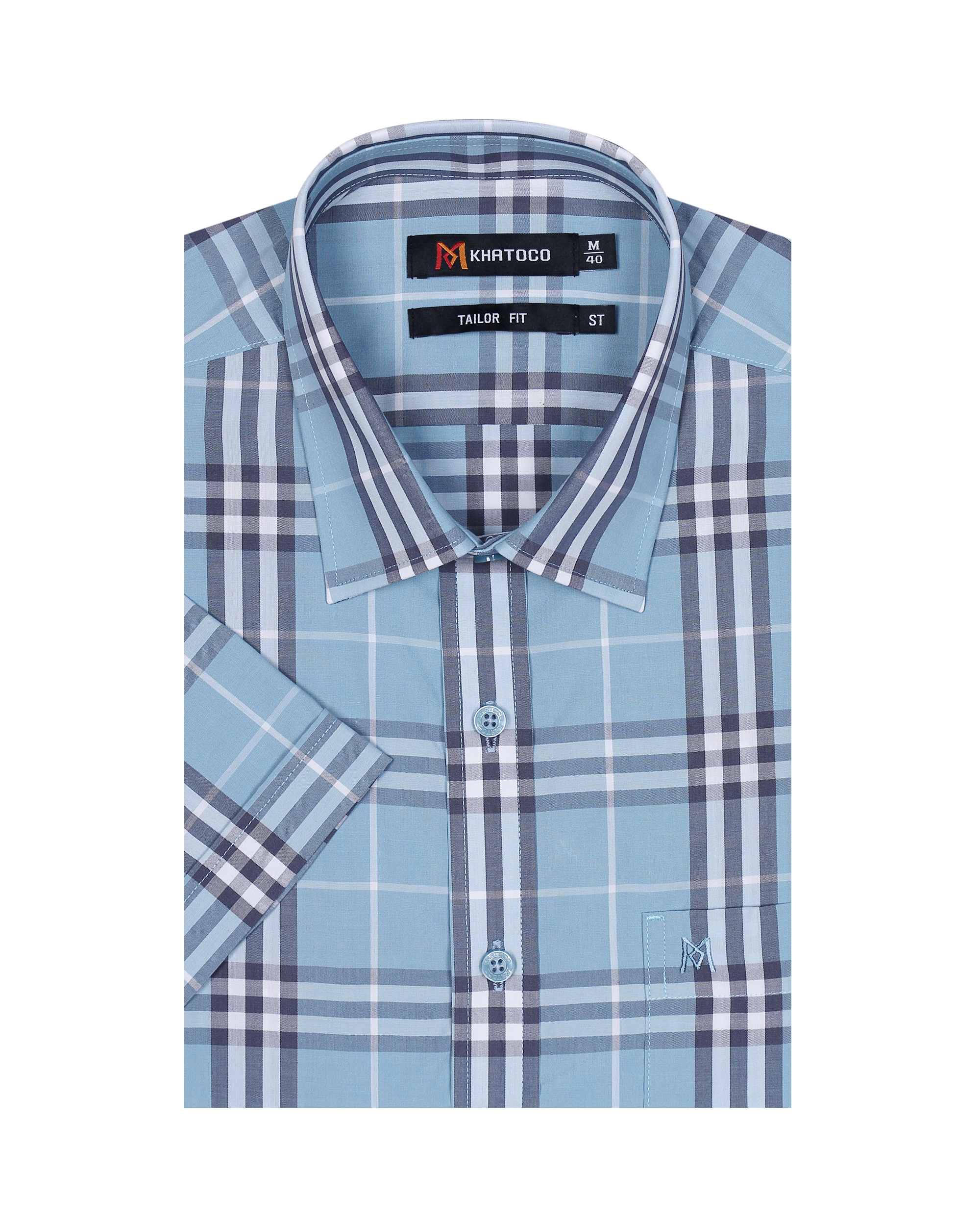 Áo sơ mi nam tay ngắn lai ngang – Khatoco - Mã hàng: A1MN538T2 - Chất liệu: 75% Polyester + 22% Viscose (Bamboo) + 3% Spandex → Vải mềm mại, thoáng mát, co giãn nhẹ,