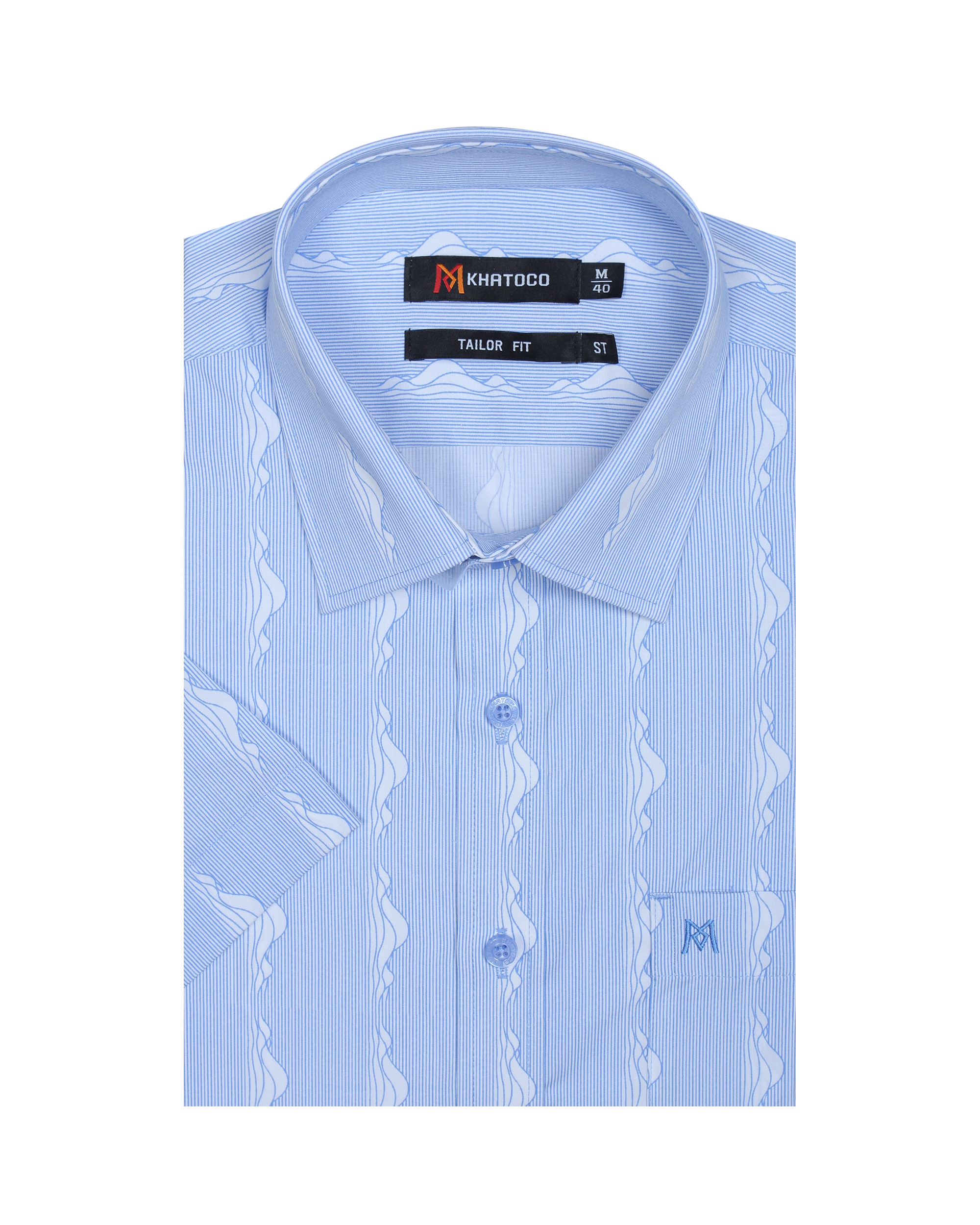 Áo sơ mi nam tay ngắn lai ngang – Khatoco - Mã hàng: A1MN538T2 - Chất liệu: 75% Polyester + 22% Viscose (Bamboo) + 3% Spandex → Vải mềm mại, thoáng mát, co giãn nhẹ,