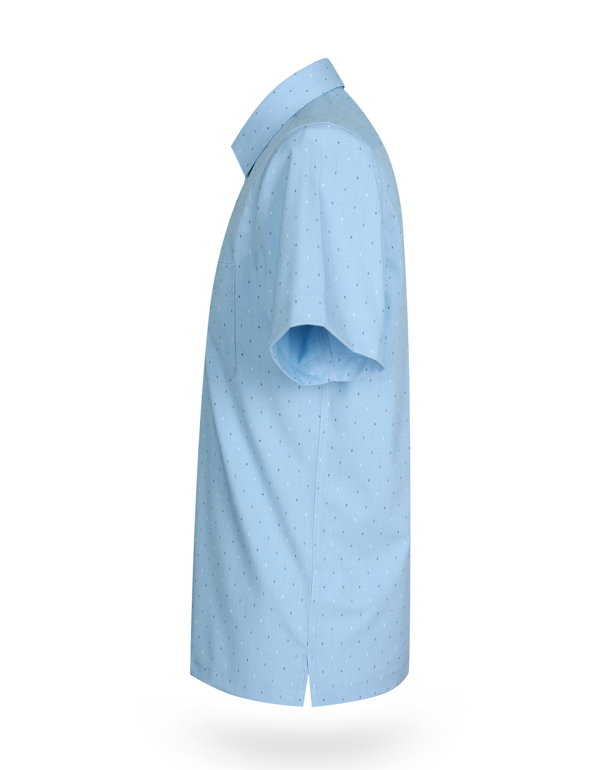 Áo sơ mi nam tay ngắn lai ngang – Khatoco - Mã hàng: A1MN538T2 - Chất liệu: 75% Polyester + 22% Viscose (Bamboo) + 3% Spandex → Vải mềm mại, thoáng mát, co giãn nhẹ,