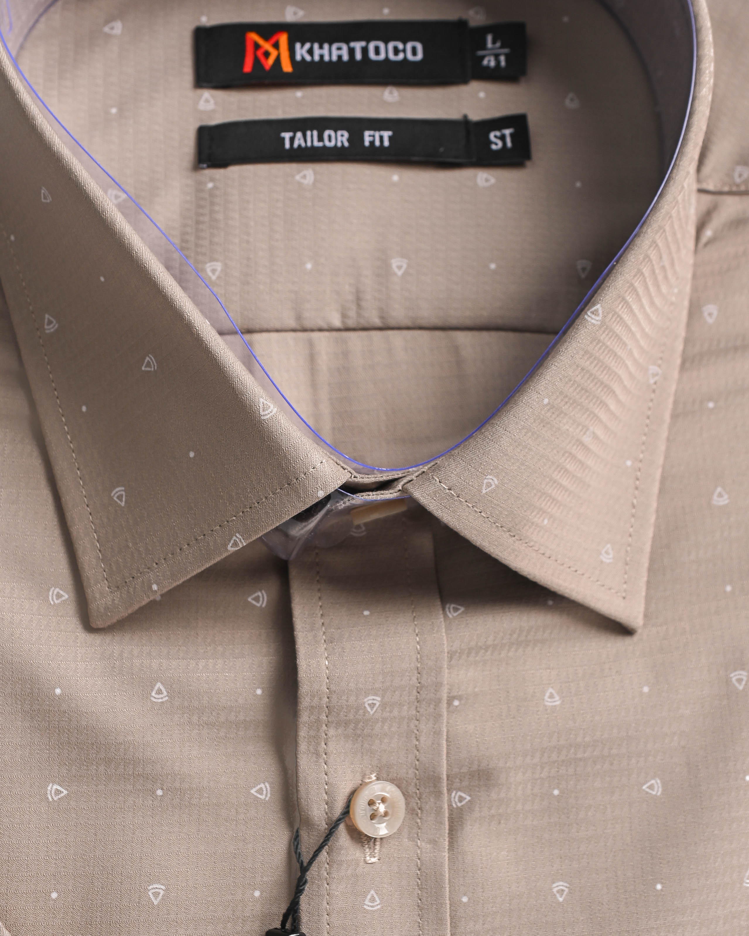ÁO SƠ MI NAM TAY NGẮN KHATOCO - TAILOR FIT Kiểu dáng: Tailor Fit - Ôm nhẹ, tôn dáng, lịch sự Màu sắc: Be sáng (họa tiết tam giác nhỏ trắng, tinh tế) Size: L – XL – 2XL ️ Thương hiệu: KHATOCO – Hàng Việt Nam chất lượng cao