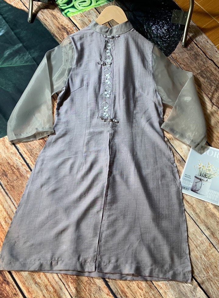 Áo sơ mi váy dáng dài, chất liệu đũi mềm mịn, áo dài cách tân nữ, form dài rộng kiểu Hàn Quốc.