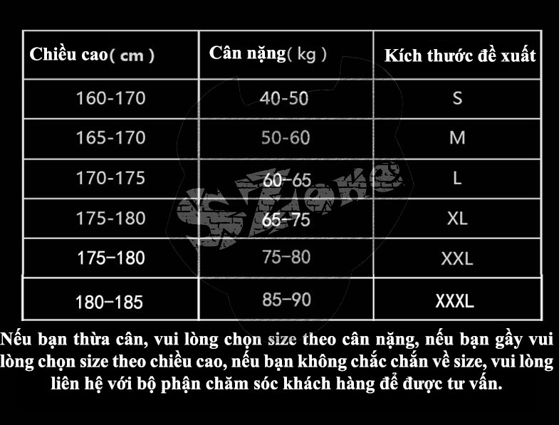 Mẫu đồ Lam SIZE 2 : Cao : 1m5 - 1m6 Nặng : 45kg - 55kg SIZE 3 : Cao : 1m6 - 1m7 Nặng : 55kg - 65kg SIZE 4 : Cao : 1m7
