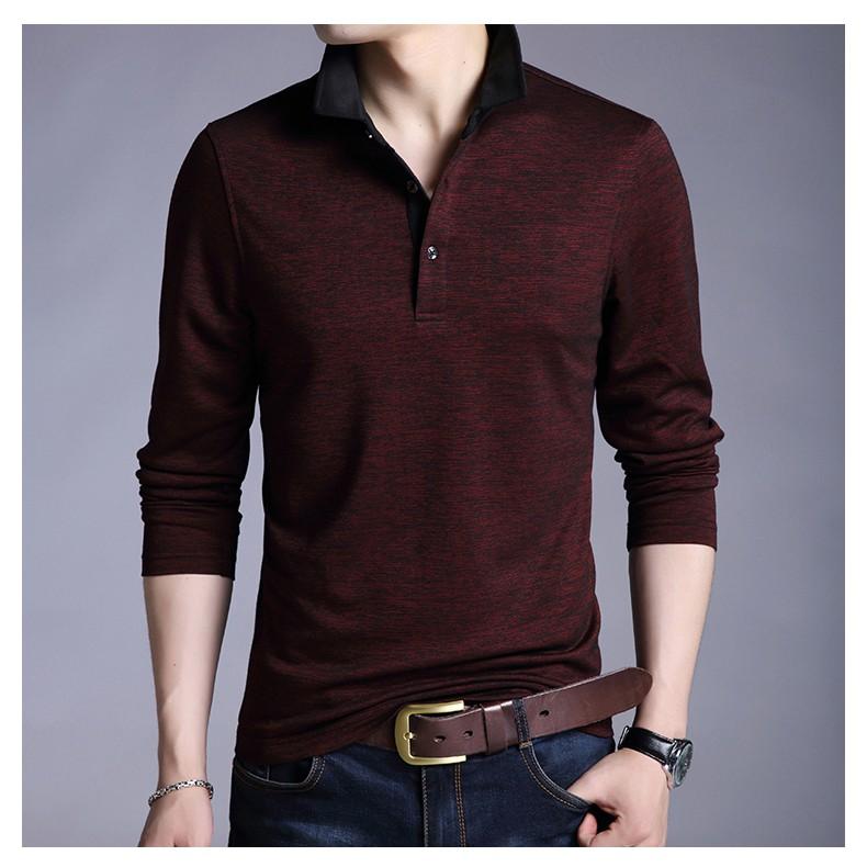 ✨ÁO THUN NAM DÀI TAY CỔ SƠ MI PHONG CÁCH HÀN QUỐC -ĐỎ ĐÔ