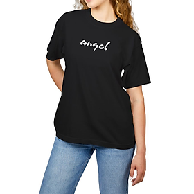 - Chiếc áo thun nữ cotton in chữ "Angel" mang phong cách trẻ trung, năng động nhưng vẫn đầy nữ tính.