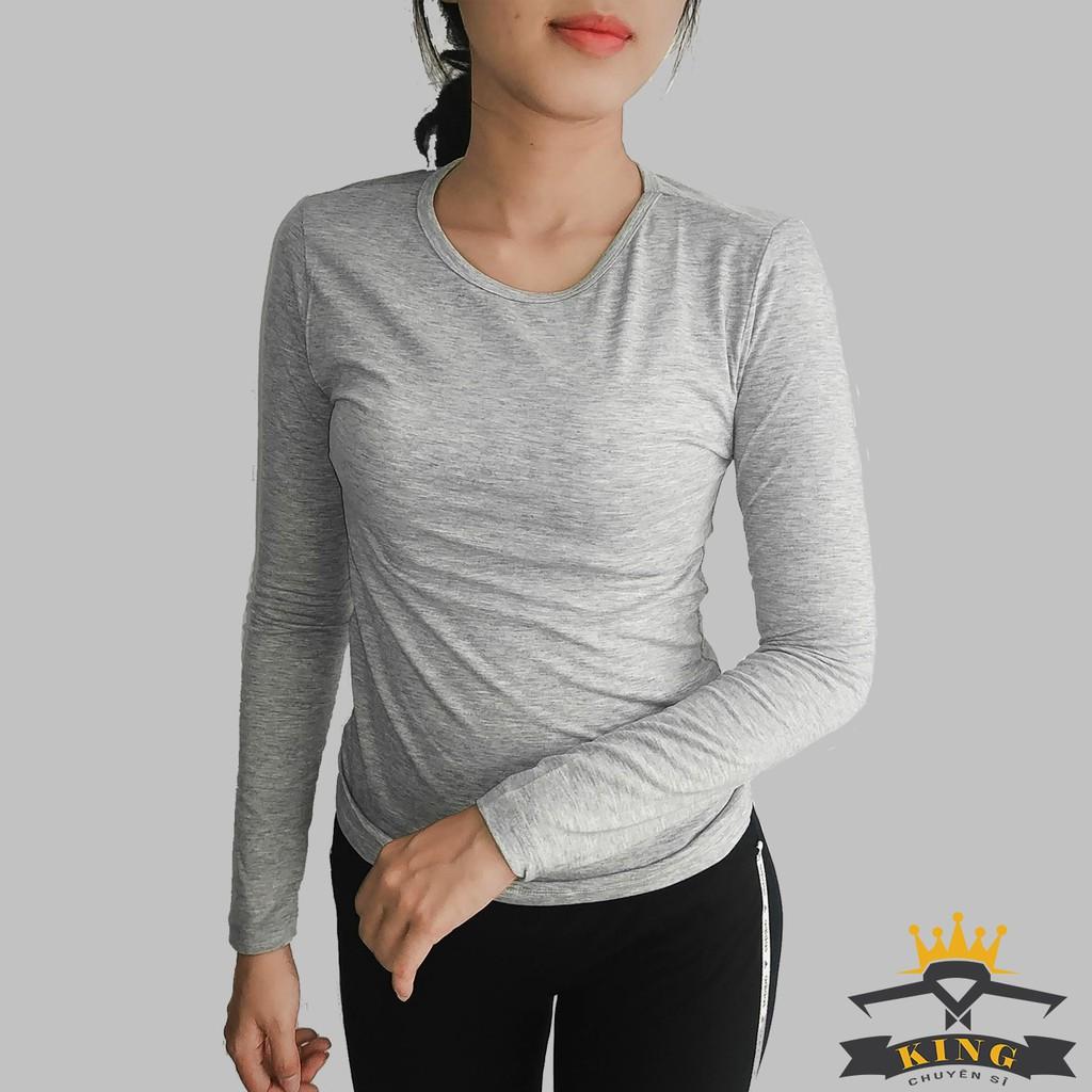 ✨Áo thun tay dài nữ đen trắng trơn KING Áo dài tay nữ đen, dáng ôm, chất thun cotton lạnh mặc hè siêu mát W05