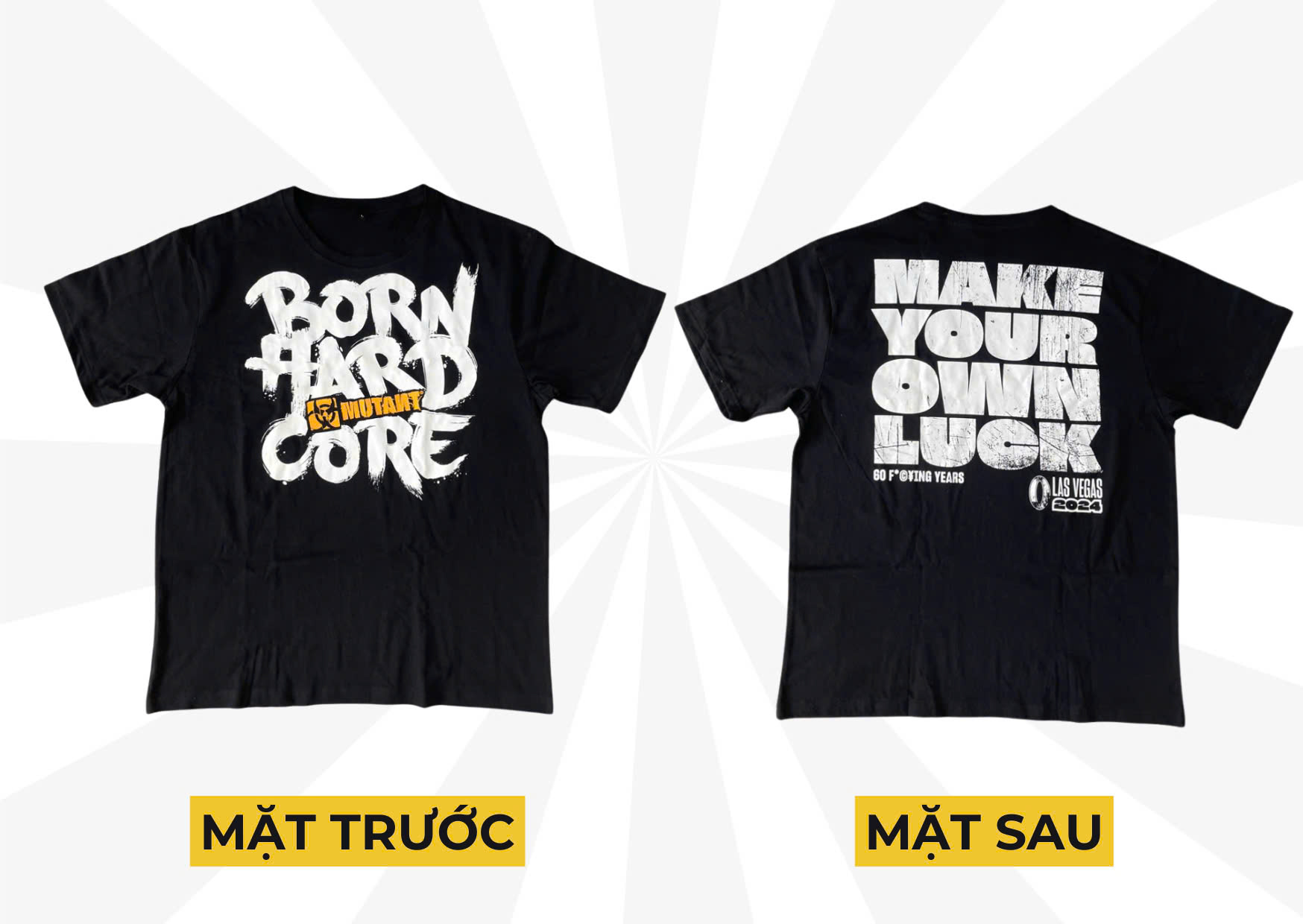 Áo thun thể thao tay ngắn Born HardCore Mutant Nhân dịp kỷ niệm 60 năm sự kiện thể hình lớn nhất thế giới MR. OLYMPIA, MUTANT cho ra mắt mẫu áo độc quyền. Sản phẩm không chỉ thể hiện phong cách thời thượng mà còn lan tỏa niềm đam mê mạnh mẽ tới mọi tín đồ thể hình. Với áo Born HardCore Mutant, bạn tự do thể hiện cá tính riêng, thoải mái phối cùng quần jean hay quần ống rộng. Chất liệu thoáng mát, thấm hút mồ hôi tốt, giúp bạn luôn thoải mái trong mọi hoạt động, từ tập luyện đến dạo phố. Hình Áo thun tay ngắn màu đen Born HardCore Mutant   THÔNG TIN SẢN PHẨM: Sự sáng tạo độc đáo đậm chất thể thao được thể hiện qua từng đường nét thiết kế, từ những họa tiết mạnh mẽ, màu sắc tươi trẻ cho đến những câu slogan đầy ý nghĩa.  Chất liệu cao cấp, bền màu, form áo chuẩn cùng đường may chắc chắn mang đến cảm giác thoải mái tuyệt đối, giúp bạn tự tin thể hiện cá tính riêng.  Công nghệ in hiện đại đảm bảo hình ảnh luôn sắc nét, bền màu sau nhiều lần giặt, đồng hành cùng bạn trong mọi hoạt động, từ phòng tập gym, sân bóng đến những buổi dạo phố cuối tuần. THÔNG SỐ KỸ THUẬT: Chất liệu: Cotton kết hợp với sợi Polyester cao cấp Màu sắc: Đen Kích thước: S, M, L, XL LƯU Ý: Không sử dụng thuốc tẩy rửa mạnh.