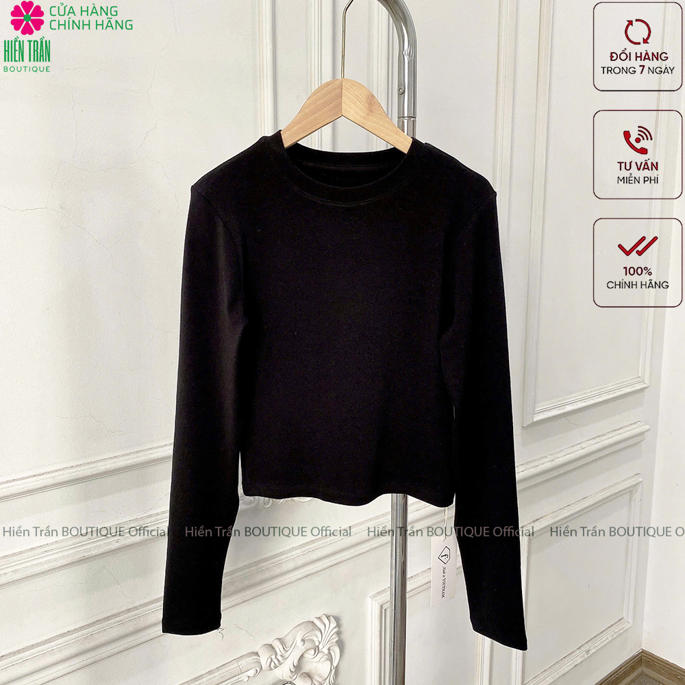 Áo thun trơn Hiền Trần BOUTIQUE cổ tròn crop dáng lỡ tay dài mặc thu đông siêu xinh cho nữ là item không thể thiếu trong tủ đồ mỗi cô gái. - Phong cách: Đơn