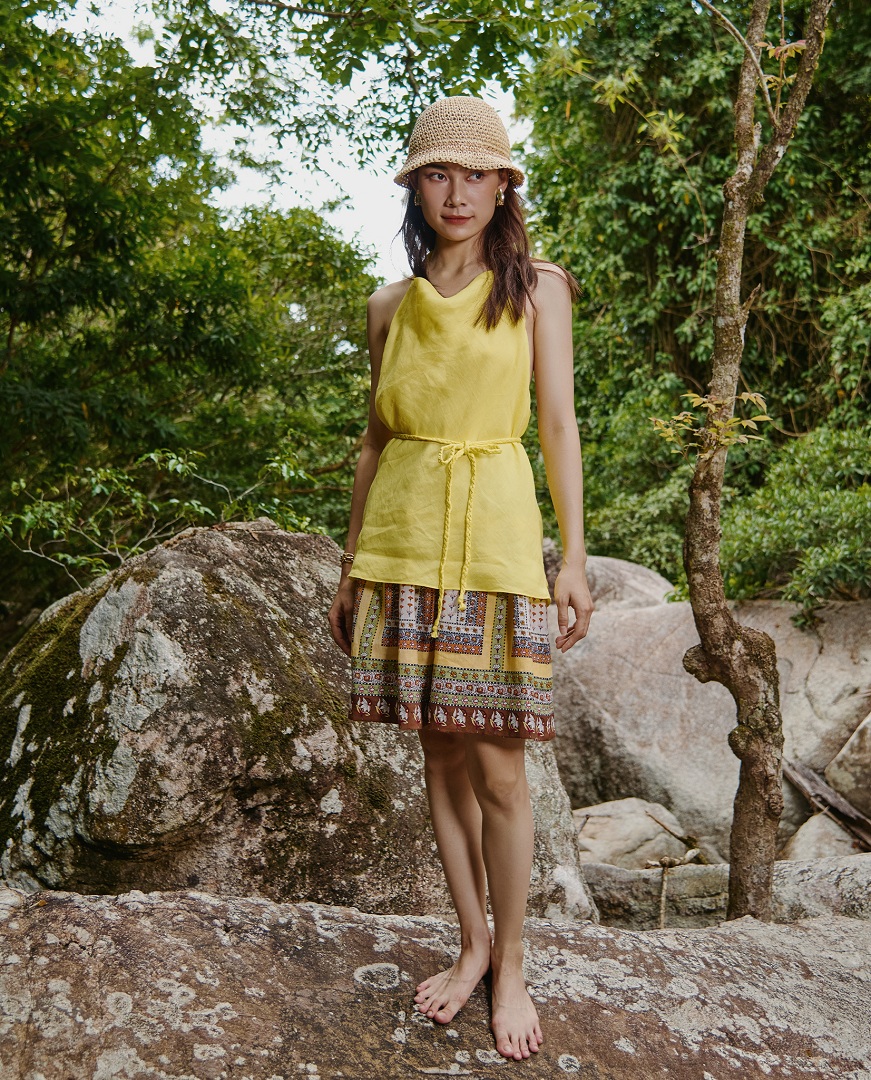 Kiểu dáng hở lưng gợi lên vẻ đẹp quyến rũ, bí ẩn. Yếm mang phong cách tự do, phóng khoáng, như nàng kim tước vàng anh gợi cảm.
