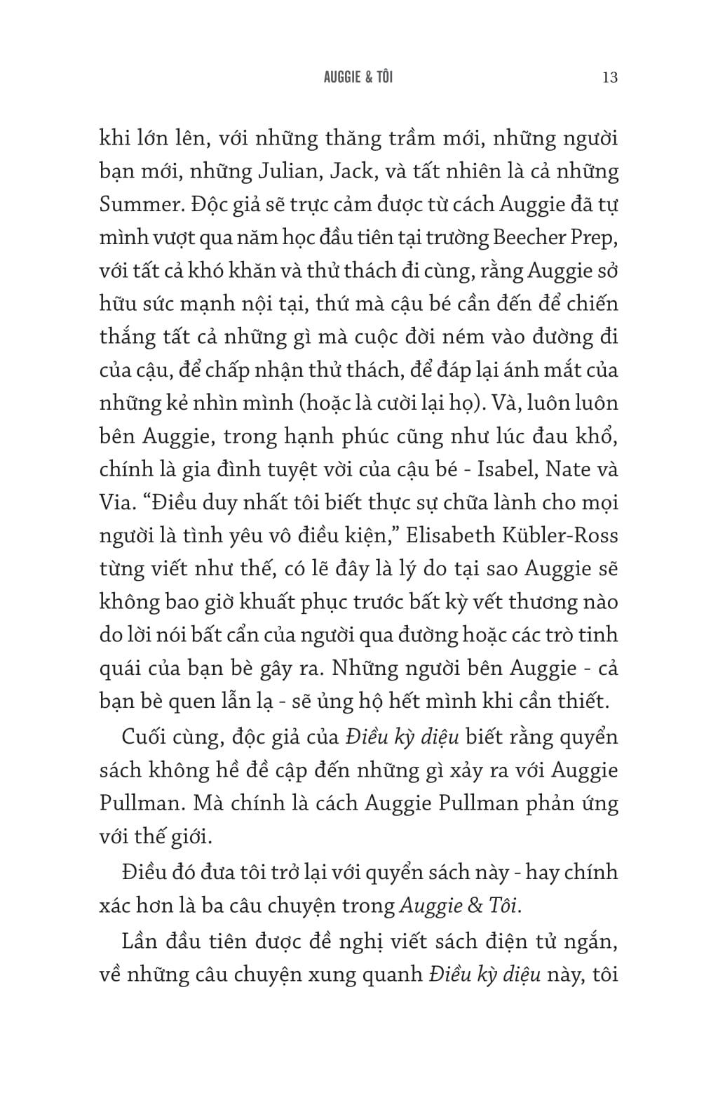 Tác phẩm đặc biệt này dành cho những độc giả mong muốn được đắm chìm nhiều hơn nữa vào thế giới của Auggie.