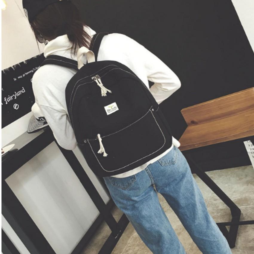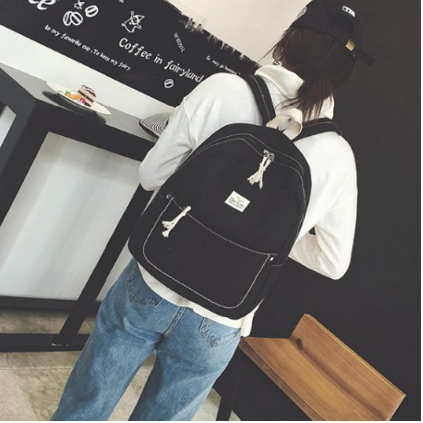 ✨️️ Ba Lô Canvas Sinh Viên Phong Cách Hàn Quốc 208069-1 (đen)