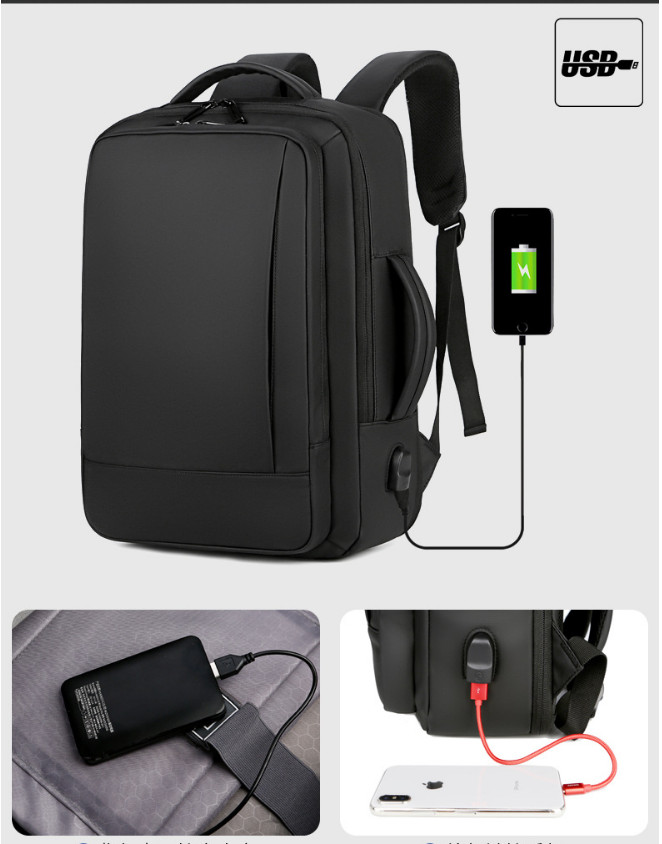 Balo du lịch chống nước BLU08 có cổng sạc USB, Balo nam đi học đẹp đựng laptop 15.6 inch