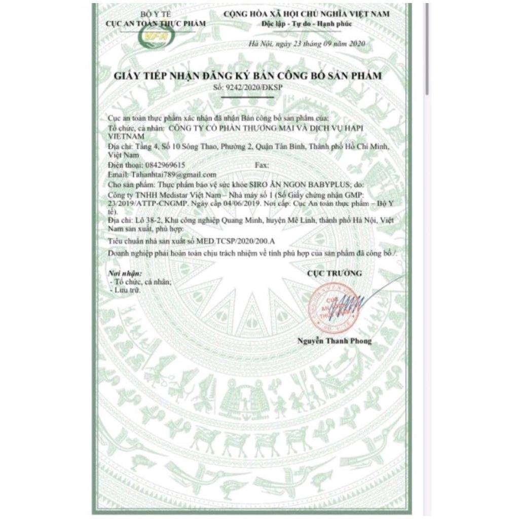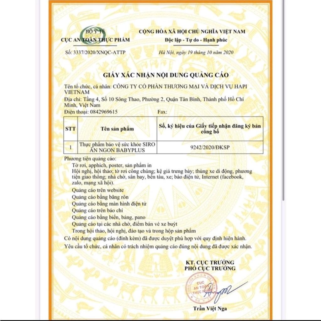 Siro Ăn Ngon BABYPLUS - Giúp Bé Tăng Cân, Tiêu Hoá Tốt, Tăng Cường Đề Kháng, Hết Táo Bón