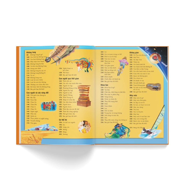 Bên cạnh đó, với 2.000 minh họa đẹp được thể hiện trên từng trang sách có nền màu khác nhau, cuốnBách khoa tri thức cho trẻ em - Khám phá và Sáng tạocòn tựa như một tổng tập tranh phong phú. Từ các chú khủng long cho đến các loài cây lạ lẫm, từ các nền văn minh cổ đại cho đến các trạm vũ trụ trong không gian, từ các đại dương bao la cho đến những cơ quan trong cơ thể, tất cả đều được tái hiện lại bằng những hình ảnh đẹp đẽ, chân thực. Vì thế, ngay cả khi còn chưa biết đọc, đây cũng là một thế giới màu sắc diệu kỳ đợi chờ các em tìm hiểu. Và nhớ rằng, khi mua sách, các em còn được một món quà nhỏ là một chiếc thẻ đọc sách xinh xinh để giúp đọc và ghi nhớ trang dễ dàng.