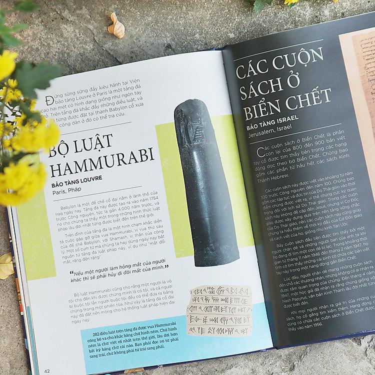 Nếu bạn là người yêu thiên nhiên, hãy tìm hiểu về loài mực ống khổng lồ hoặc quả trứng chim voi. Nếu bạn quan tâm đến lịch sử, hãy khám phá đội quân đất nung dưới lòng đất hoặc Cổng Ishtar, nơi đã từng chào đón các du khách đến với thành phố cổ Babylon. Còn nếu bạn đang ấp ủ ước mơ trở thành nhà khoa học, có thể bạn sẽ muốn nghiên cứu về mẫu máy bay cổ nhất. Dù sở thích của bạn là gì, bạn sẽ tìm thấy những vật kỳ diệu mà bạn yêu thích trong những trang sách này đấy. Nào, giờ thì bạn đã sẵn sàng khám phá những “báu vật” ấy chưa? Hãy mở sách ra và bắt đầu tìm hiểu về những “kỳ quan” trong các viện bảo tàng trên thế giới nhé!