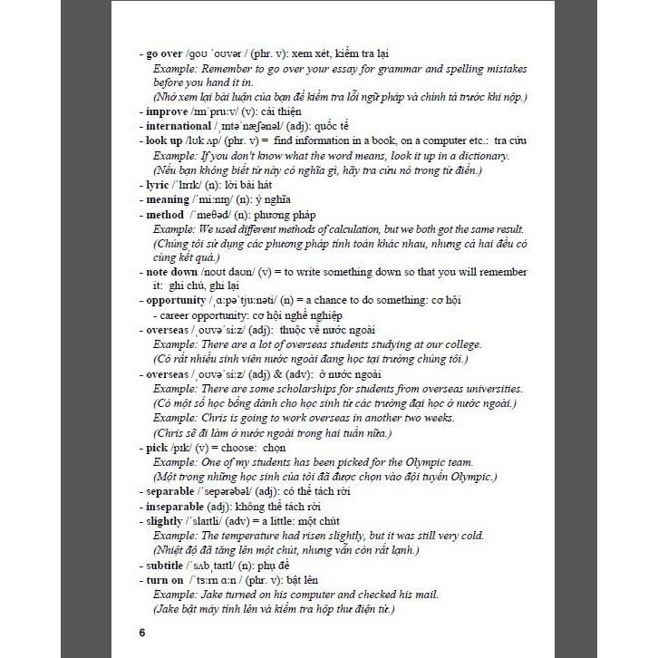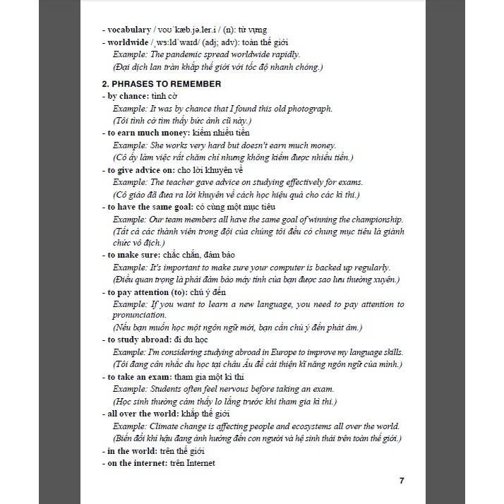 I. Vocabulary: giải thích ý nghĩa những từ mới trong mỗi Unit; có nhiều ví dụ minh họa để học sinh nắm vững cách dùng từ.