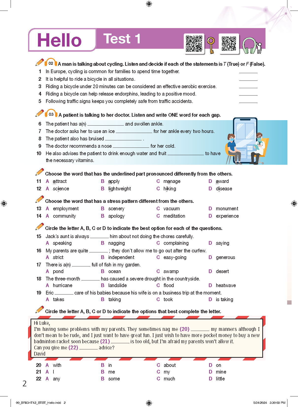 Tiếng Anh 12 Bright - Unit Hello - Trang 8, 9 (DỄ HIỂU NHẤT)