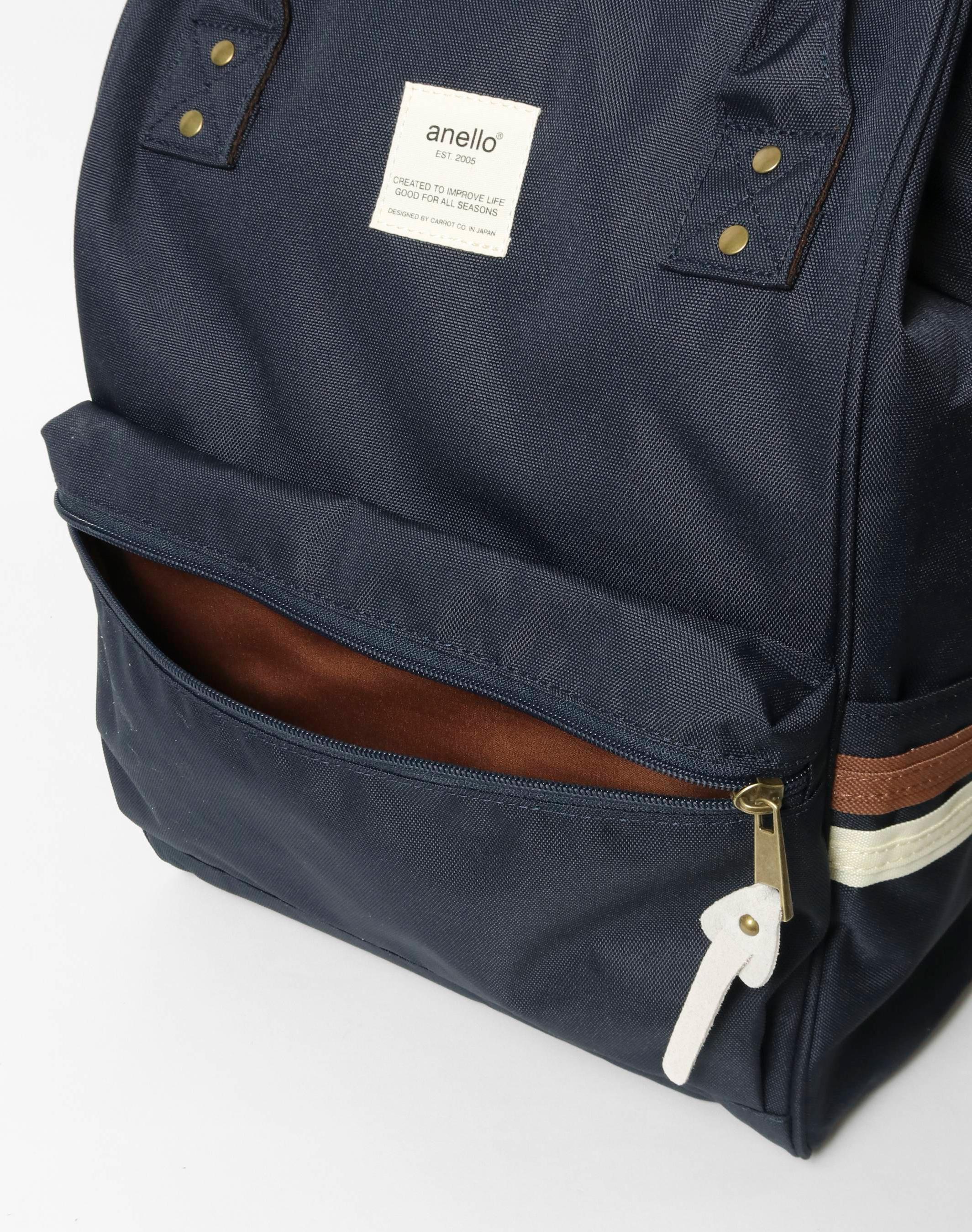 Đây là một trong những mẫu balo được ưa thích nhất của anello với thiết kế 2 sọc đặc trưng. Có thể đựng vừa tài liệu A4 và nhiều vật dụng khác với 8 ngăn túi lớn nhỏ khác nhau .