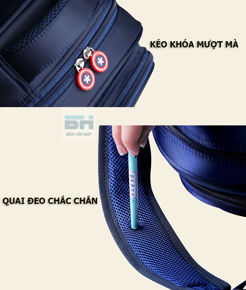 ✨Balo Đội trưởng Mỹ BH Kids chống nước, chống gù cho học sinh cấp 1 - Cặp nhiều ngăn - Phát sáng ban đêm - BHS05