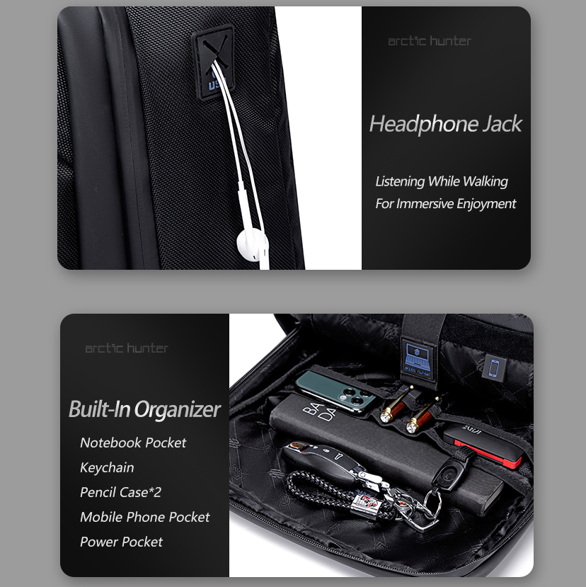 Thiết kế mang hơi hướng hiện đại, vừa đơn giản, vừa sang trọng. Sản phẩm chắc chắn sẽ khiến bạn trở nên tươm tất, phong cách và đẳng cấp khi đi du lịch, đi chơi thể thao hay đi học. Tích hợp cổng ra USB, bạn có thể dễ dàng kết nối điện thoại vào sạc dự phòng khi đi đường.