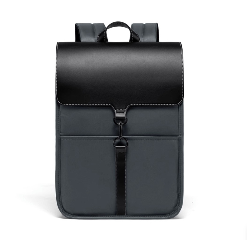 Chiếc Balo laptop nam nữ 15”, ba lô đi làm, đi học đựng máy tính 15inch ngăn trước khoá gài với thiết kế dáng đứng cùng chi tiết ngăn trước khoá gài phối da vân tạo