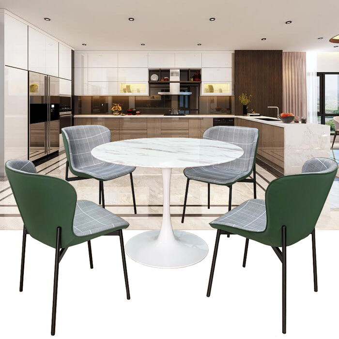 Bàn ăn Tulip tròn gỗ sơn màu trắng 1m Chân thép sơn tĩnh điện đế to vững chắc kiên cố kết hợp với ghế ECO sang trọng Nội thất CAPTA