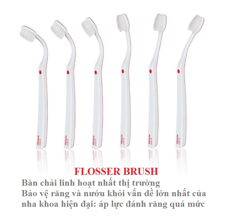 Bàn chải đánh răng Flosser Brush lông siêu mềm UltraSoft Thụy Sĩ Điểm đặc biệt: - Bàn chải Flosser Brush lông siêu mềm UltraSoft với tay cầm linh hoạt giúp tối đa hóa việc làm