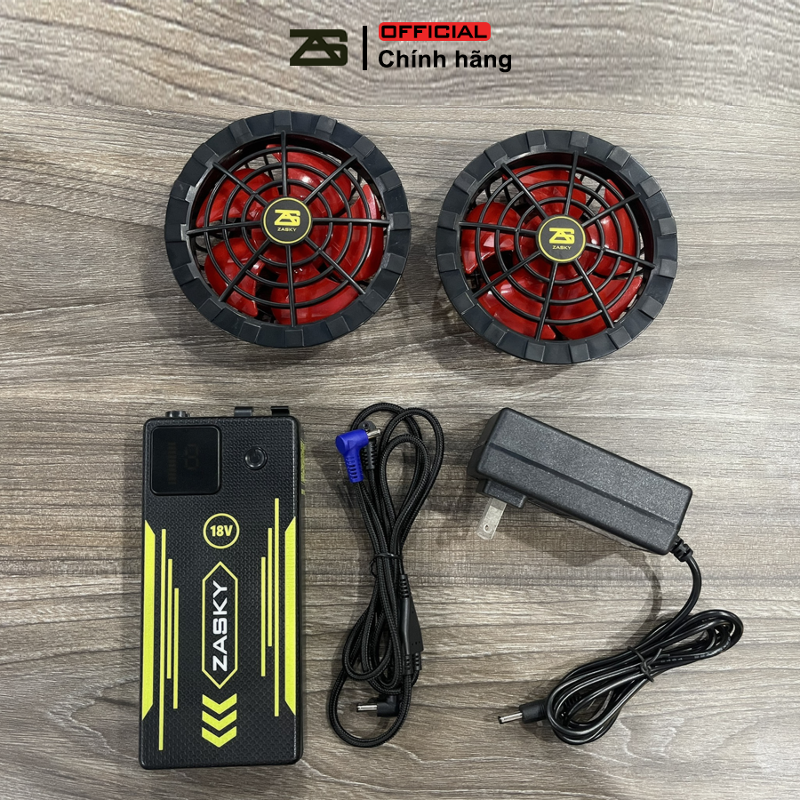 BỘ PHỤ KIỆN GẮN ÁO ĐIỀU HÒA ZASKY NHẬT BẢN 1 PIN + 2 QUẠT + 1 DÂY NỐI + 1 SẠC LÀ ĐƠN VỊ PHÂN PHỐI ĐẠT TIÊU CHUẨN PSE VỚI DÒNG PIN ZASKY