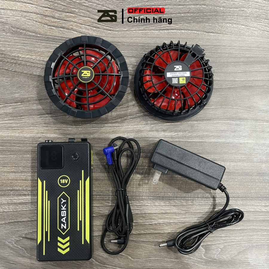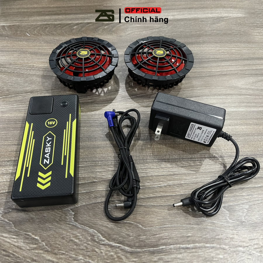 BỘ PHỤ KIỆN GẮN ÁO ĐIỀU HÒA ZASKY NHẬT BẢN 1 PIN + 2 QUẠT + 1 DÂY NỐI + 1 SẠC LÀ ĐƠN VỊ PHÂN PHỐI ĐẠT TIÊU CHUẨN PSE VỚI DÒNG PIN DOKY