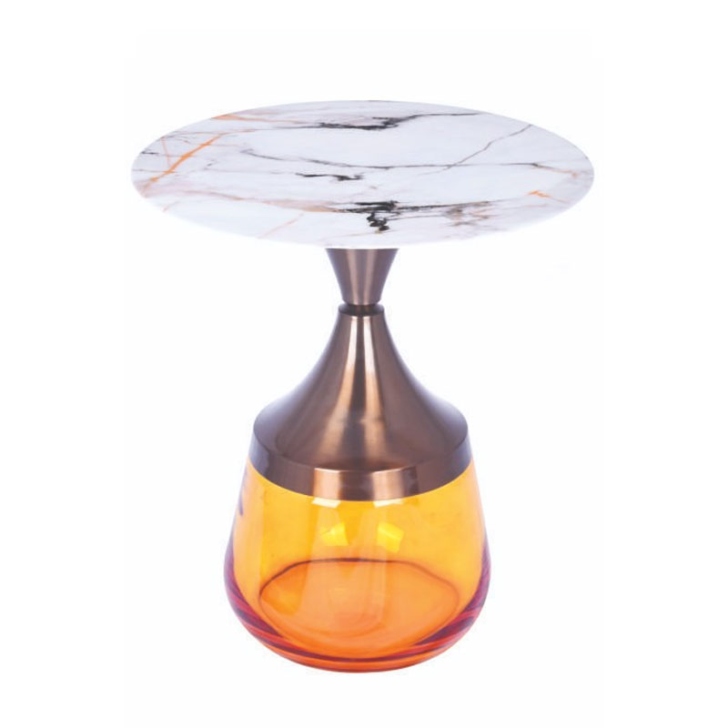 Bàn decor góc sofa chân thuỷ tinh TS0966-05E Nội thất Capta Bàn sofa góc nhỏ gọn mặt đá viềng mạ đồng chân thuỷ tinh màu xanh lá xám vàng trong tại HCM