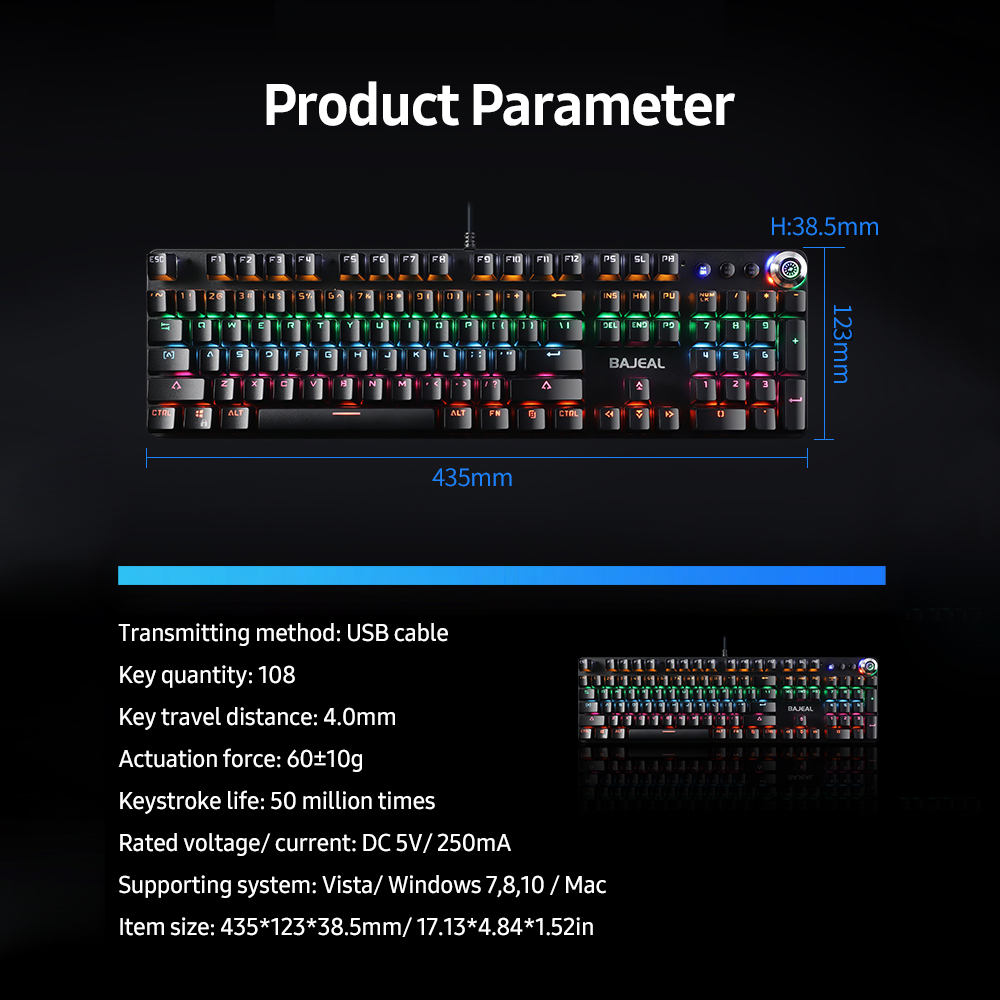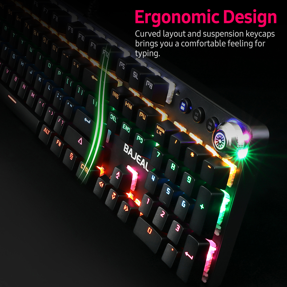 ✨Bàn phím cơ có dây BAJEAL chơi game có đèn nền LED,di chuyển với Công tắc màu xanh