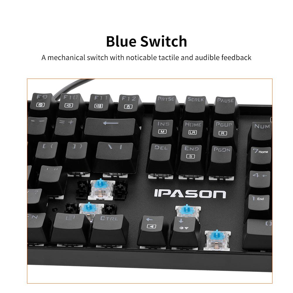 ✨Bàn phím cơ IPASON chơi game kim loại 104 phím Màu xanh lam có đèn nền Rollover N-key dành cho văn phòng và trò chơi