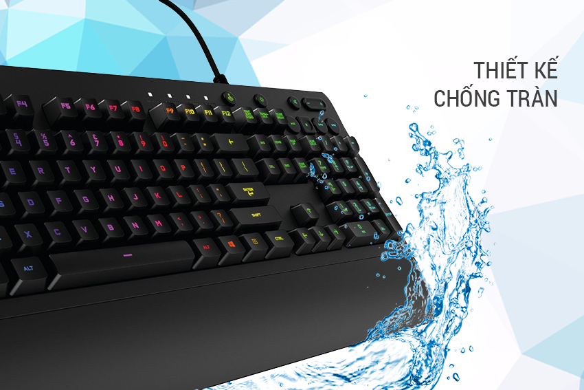 Bàn Phím Có Dây Logitech G213 Prodigy RGB - Gaming được thiết kế chống tràn giúp bạn không còn lo lắng về việc chất lỏng vô tình bị đổ lên trên bàn phím nhờ những lỗ thông bên dưới giúp chất lỏng chảy xuống.