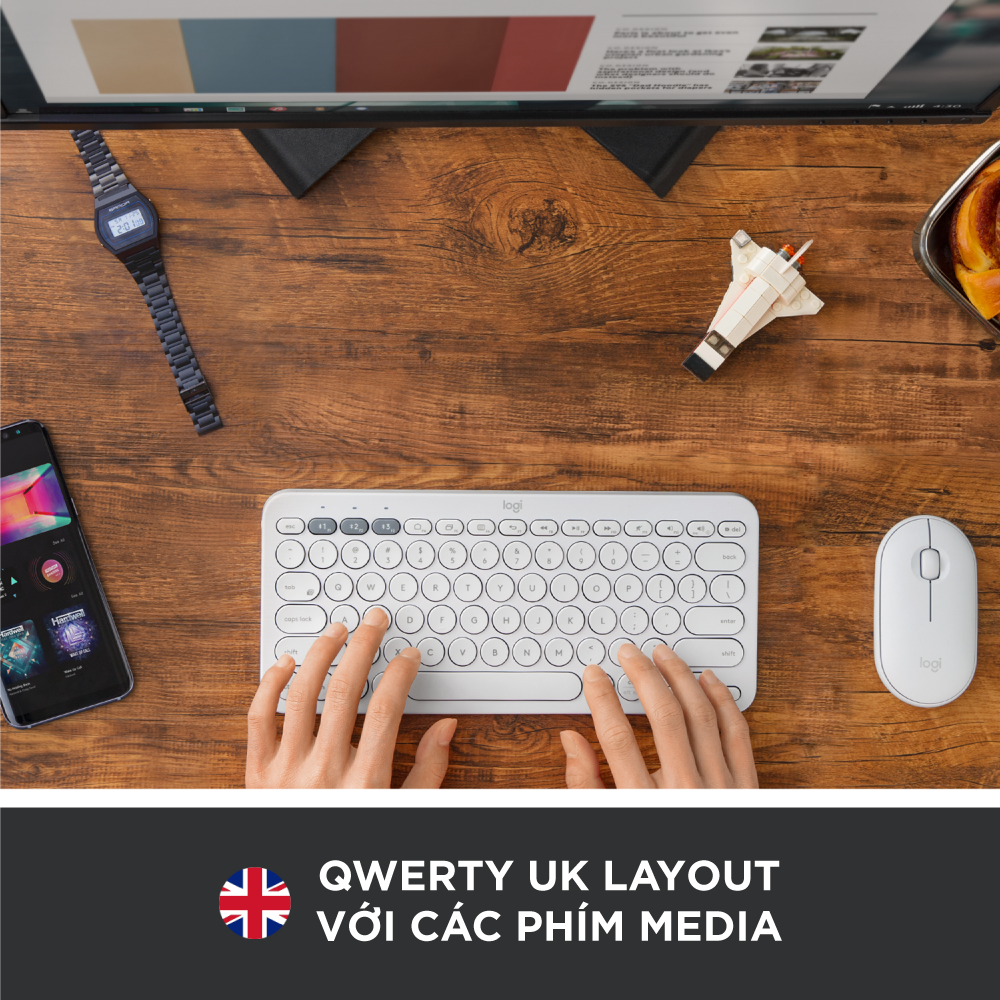 - Thiết kế siêu mỏng, trọng lượng nhẹ, dễ dàng mang theo và bố trí trên bàn làm việc - Kết nối không dây Bluetooth hỗ trợ đa thiết bị, cho phép kết nối cùng lúc tối đa 3 thiết bị - Tương thích linh hoạt với Windows, macOS, iPadOS, iOS, Android và ChromeOS - Phím tròn đặc trưng của Logitech, mang lại cảm giác gõ êm ái và phản hồi tốt - Tích hợp phím tắt thông minh, dễ dàng chuyển đổi nhanh giữa các thiết bị chỉ bằng một nút bấm - Sử dụng 2 viên pin AAA, cho thời lượng sử dụng lên đến 36 tháng - Phạm vi kết nối ổn định trong bán kính 10m, hoạt động mượt mà và tin cậy - Thiết kế tối giản, phối màu hiện đại, phù hợp không gian làm việc sáng tạo - Cấu trúc bàn phím chắc chắn, hạn chế tiếng ồn khi gõ - Thương hiệu Logitech uy tín, chất lượng cao, bảo hành chính hãng LƯU Ý KHI MUA HÀNG Cảm ơn quý khách đã quan tâm đến sản