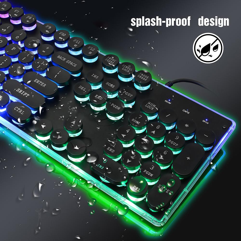 Description This Membrane Keyboardtakes the gaming experience to a new level. Tactile, responsive Membrane keys and the frameless, brushed ABS panel put you in control for an outstanding typing or gaming experience. Features It adopts metal panel and sandblasting technology, which is high-grade and durable. Retro round key cap design, character laser carving is not easy to fade. High-elastic floating button, comparable to mechanical keyboard. Vintage steampunk keycap design, stylish retro style. Backlight colorful mixed light design, can be turned off. FN+ multimedia function combination shortcut key design. Specifications: Brand Name:ZERODATE Voltage: 5V /100 mA Material: ABS + metal panel Operation Style: Membrane Press the number of keys: 104 keys Keycap type: Punk circular suspension Keyboard line length: 1.5m Multimedia button: Support Delivery mode: colorful mixed ligh Transmission method: USB interface System requirements: Windows 98 / Me / 2000 / XP / Vista / Win 7 / Win8 / 10/Vista Mac OS or latest. Keyboard net weight: Approx.696g Keyboard size: Approx.45 x 13.6 x 2.6cm/17 x 5 x 1in Packing weight: Approx.852g Packing size: Approx.46.2 x 16.3 x 3.9cm/18 x 6.4 x 1.5in Package Included: 1 x Gaming keybord 1 x User manual