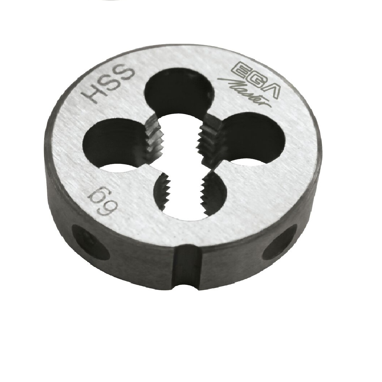Bàn ren hệ inch UNC 1/4" x 20 Ega Master 57928 Đường kính khoan ren: 1/4" Kiểu ren: hệ inch Độ dày bàn ren: 07 mm Đường kính ngoài bàn ren: 20 mm Vật liệu