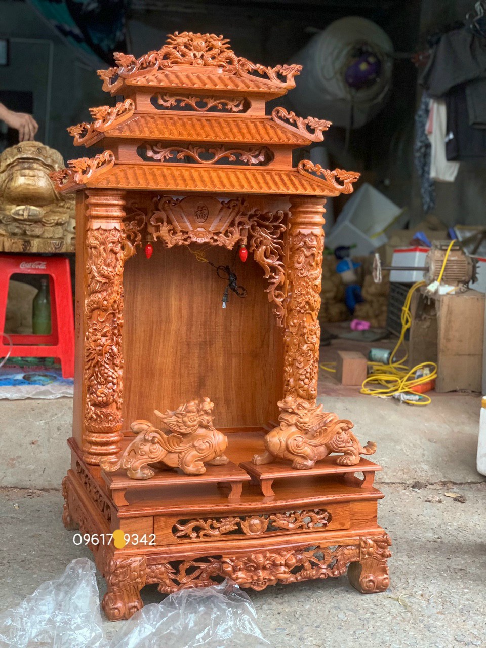 _ Bàn thờ ông địa ông thần tài được làm bằng chất liệu gỗ hương đá tự nhiên 100% _ Kt 61×69×130cm _ Bàn thờ được chạm khắc lắp giáp tỉ mỉ ,tinh xảo kỳ