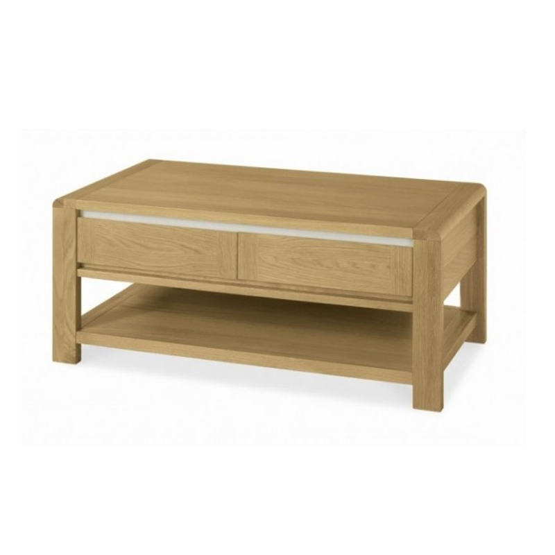 Sản phẩm có kích thước: 1100 x 600 x 450 mm. Lý tưởng với những phòng khách nhỏ, chiếc bàn trà này có 2 ngăn kéo 2 bên rất hữu ích để cất giữ điều khiển TV, bộ bài, máy tính bảng… Bề mặt bàn có thể để bộ ly tách, sách báo… Bàn thuộc bộ sưu tập Casa đặc trưng bởi phong cách đồng quê với nóc dầy bo góc và bộ khung chắc khỏe. Chất liệu bàn làm từ gỗ sồi trắng Mỹ lâu năm có khả năng kháng sâu mọt cao và chế tác hoàn toàn thủ công bởi những người thợ lành nghề. Vân gỗ dạng đồng tâm và mưa rơi của những cây gỗ lâu năm được sơn PU cao cấp, tạo nên sự độc đáo cho mỗi sản phẩm, góp phần làm cho không gian nội thất thêm quyến rũ.
