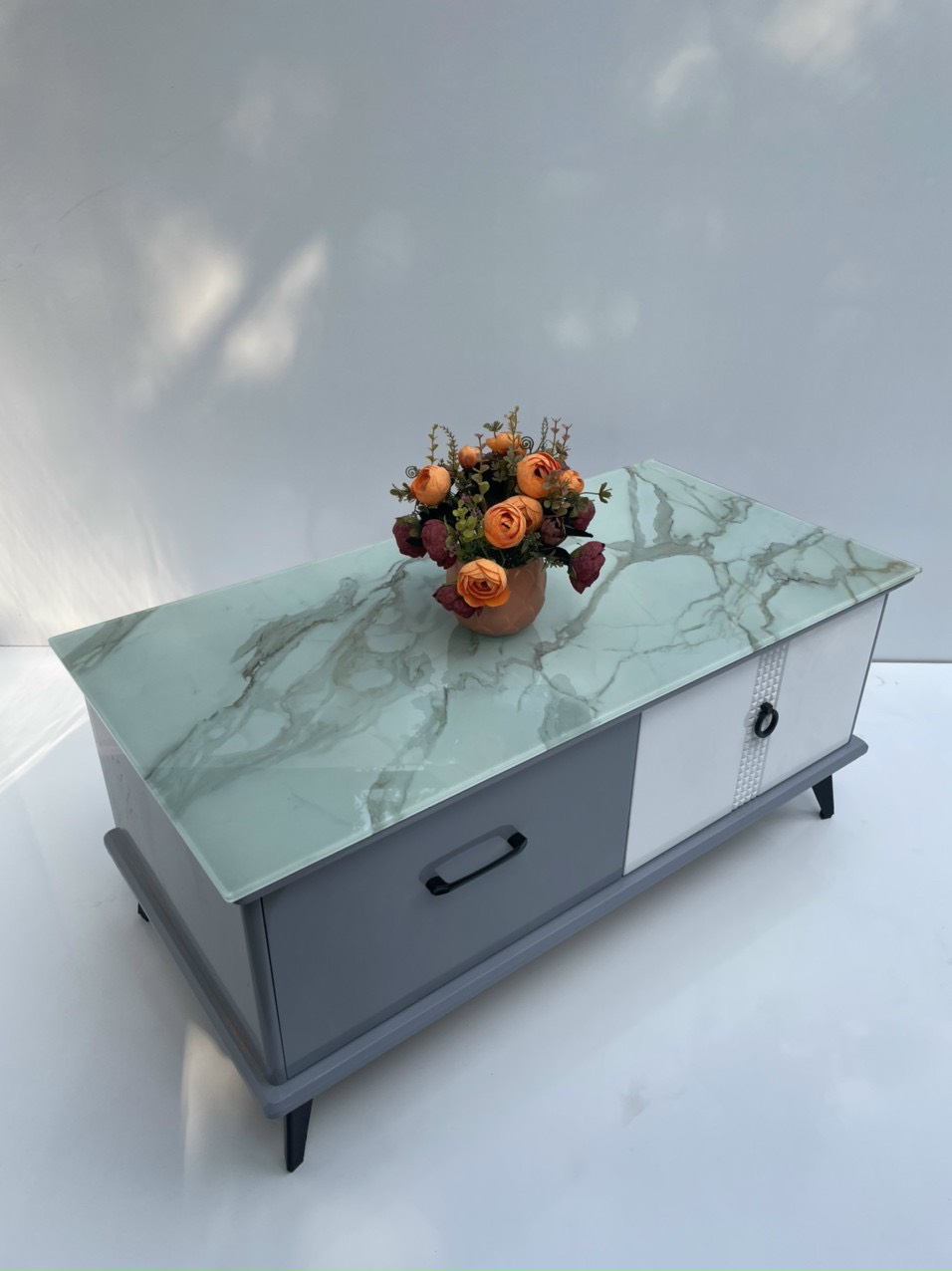 ✨Bàn trà mặt kính vân xám mẫu mới 2023 Tundo KT50x100x45cm
