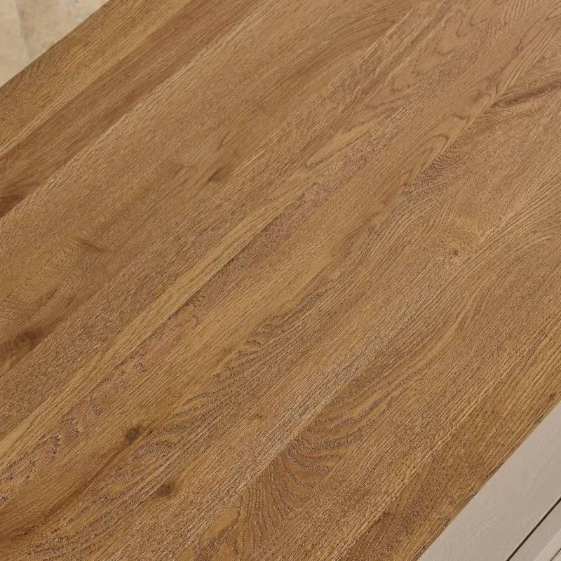 Bàn trà Seychelles thiết kế kiểu dáng thanh lịch và sang trọng, phù hợp cho không gian phòng khách của gia đình bạn. Mặt kệ mở rộng rãi sẽ là nơi trưng bày và cất giữ gọn gàng những đồ vật trong căn phòng. Kết hợp mặt bàn màu nâu tự nhiên của chất liệu gỗ sồi trắng Mỹ nhập khẩu cao cấp, có độ bền tốt và sử dụng được lâu dài theo thời gian. Thiết kế mang đặc trưng của bộ sưu tập Seychelles với tông màu sơn trắng xám nhẹ nhàng, đường nét trang trí đẹp, phối hợp họa tiết trang trí chéo gây ấn tượng cho người nhìn. Hãy kết hợp bàn trà này cùng mẫu ghế sofa để tạo nên phong cách riêng cho ngôi nhà của bạn.
