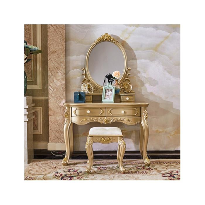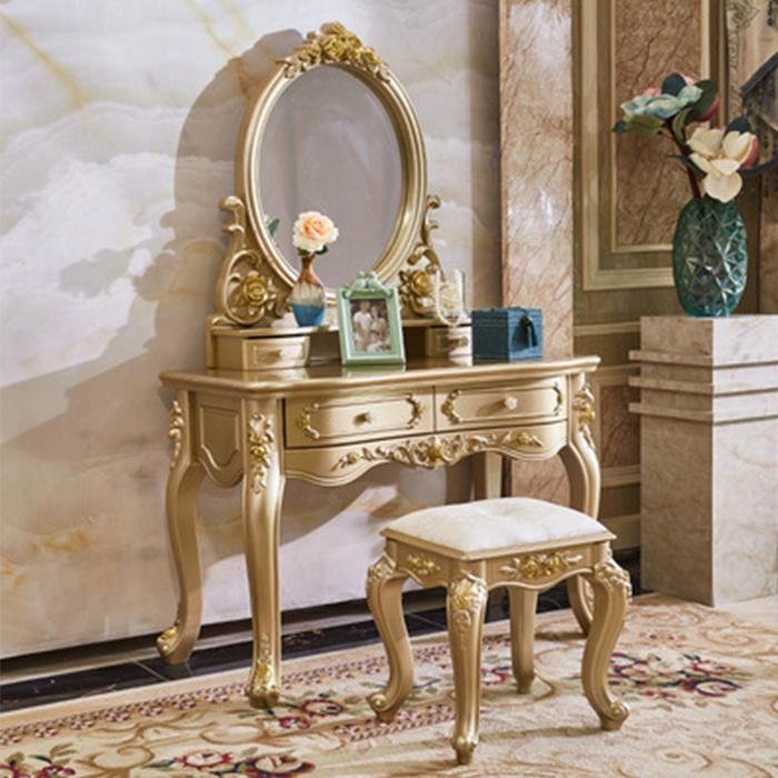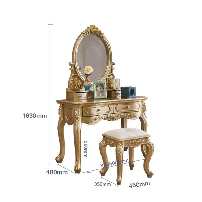 ✨Bàn trang điểm phong cách Châu Âu tân cổ điển, Bàn phấn ánh vàng 3 ngăn kéo đan năng