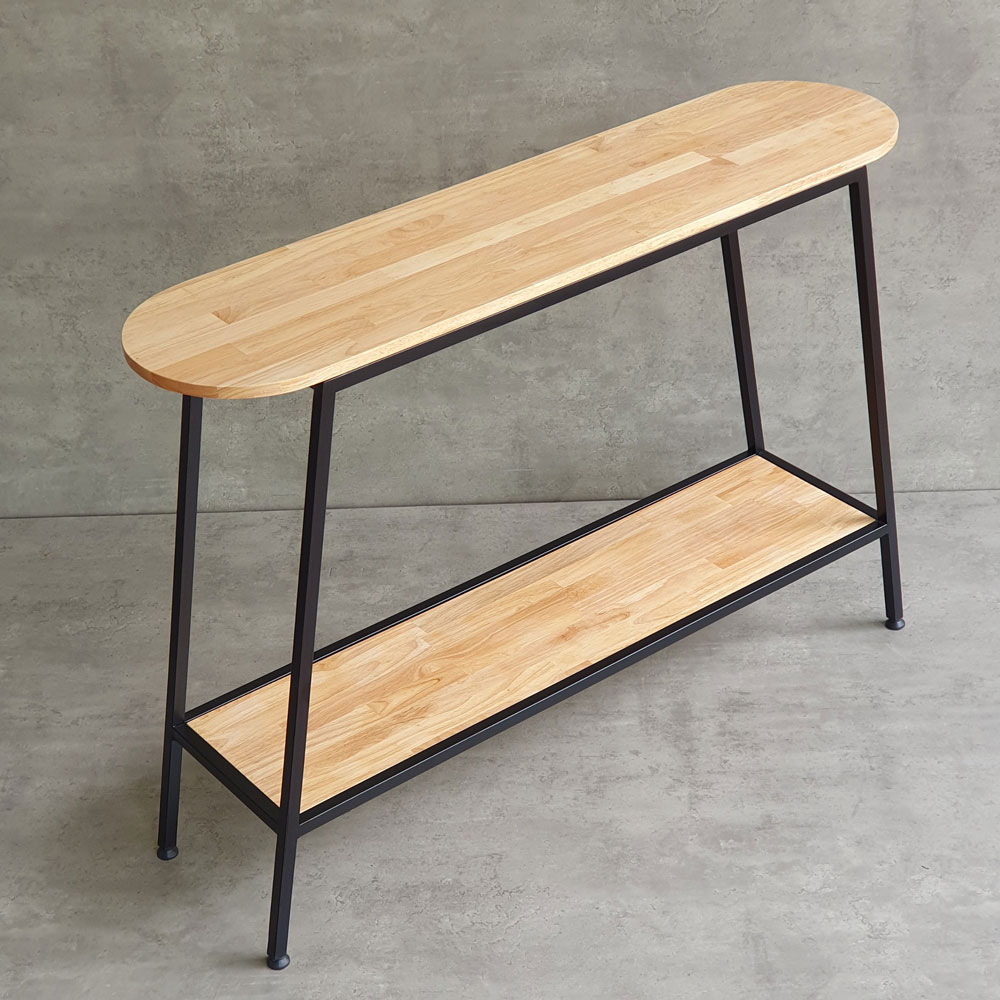 Bàn console trang trí gỗ cao su khung sắt CSTCT047 sử dụng vật liệu chính là gỗ cao su tiêu chuẩn AA dày 17mm được xử lý và hoàn thiện vân màu gỗ tự nhiên